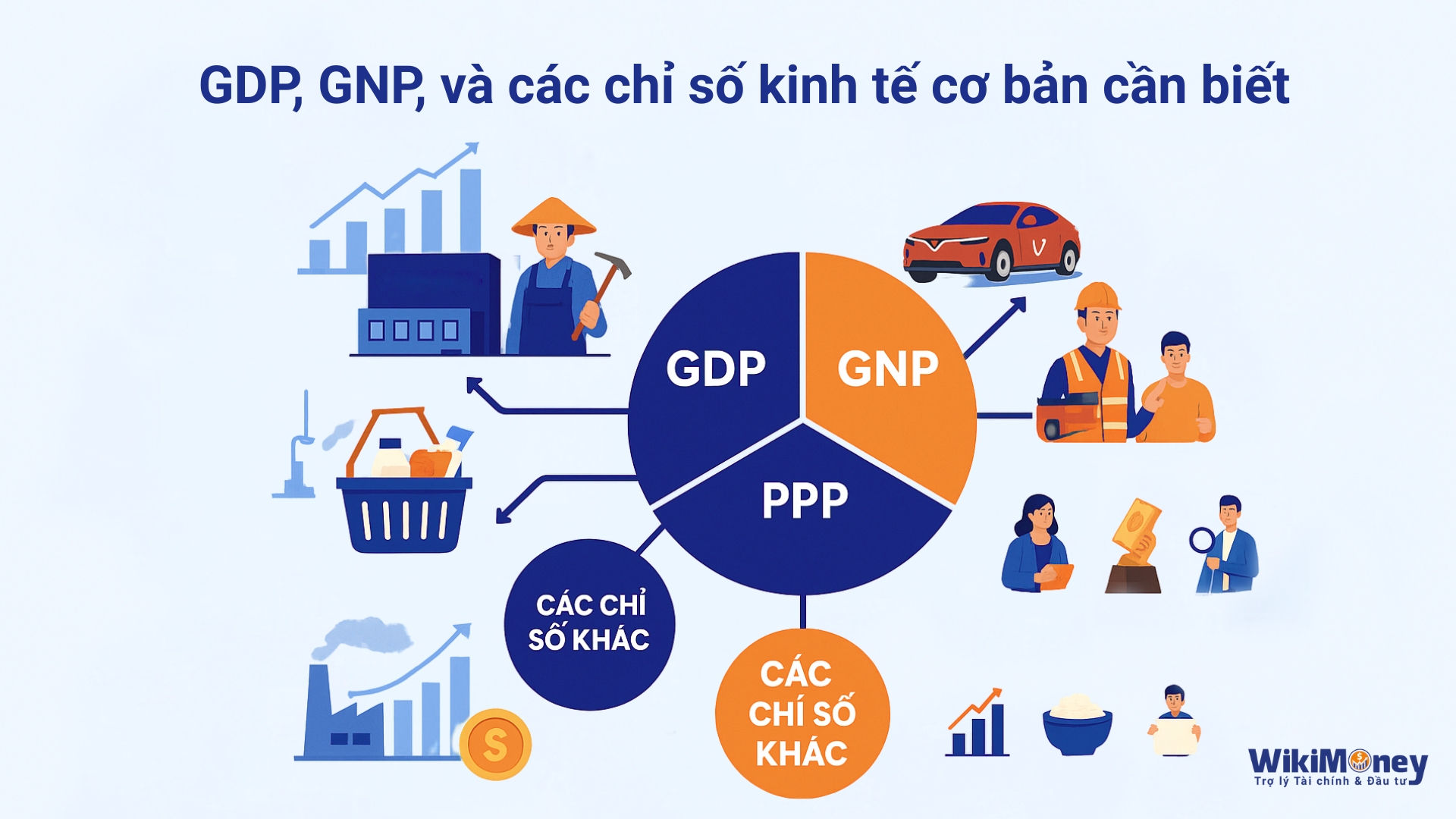 Khi đọc báo hay xem thời sự, bạn thường nghe đến các cụm từ như “GDP tăng trưởng bao nhiêu phần trăm”, “GNP cao hay thấp”, hoặc “PPP có ý nghĩa gì”. Những chỉ số này có thể nghe xa lạ, nhưng chúng thực sự có ý nghĩa lớn đối với cuộc sống hàng ngày của bạn, từ giá gạo ngoài chợ đến cơ hội việc làm, từ chi tiêu cá nhân đến đầu tư kinh doanh. Hiểu rõ về GDP, GNP, PPP và các chỉ số kinh tế cơ bản khác không chỉ giúp bạn có cái nhìn tổng quan về nền kinh tế quốc gia mà còn hỗ trợ bạn đưa ra quyết định thông minh hơn trong cuộc sống, đặc biệt trong bối cảnh Việt Nam – một nền kinh tế đang phát triển nhanh chóng.
