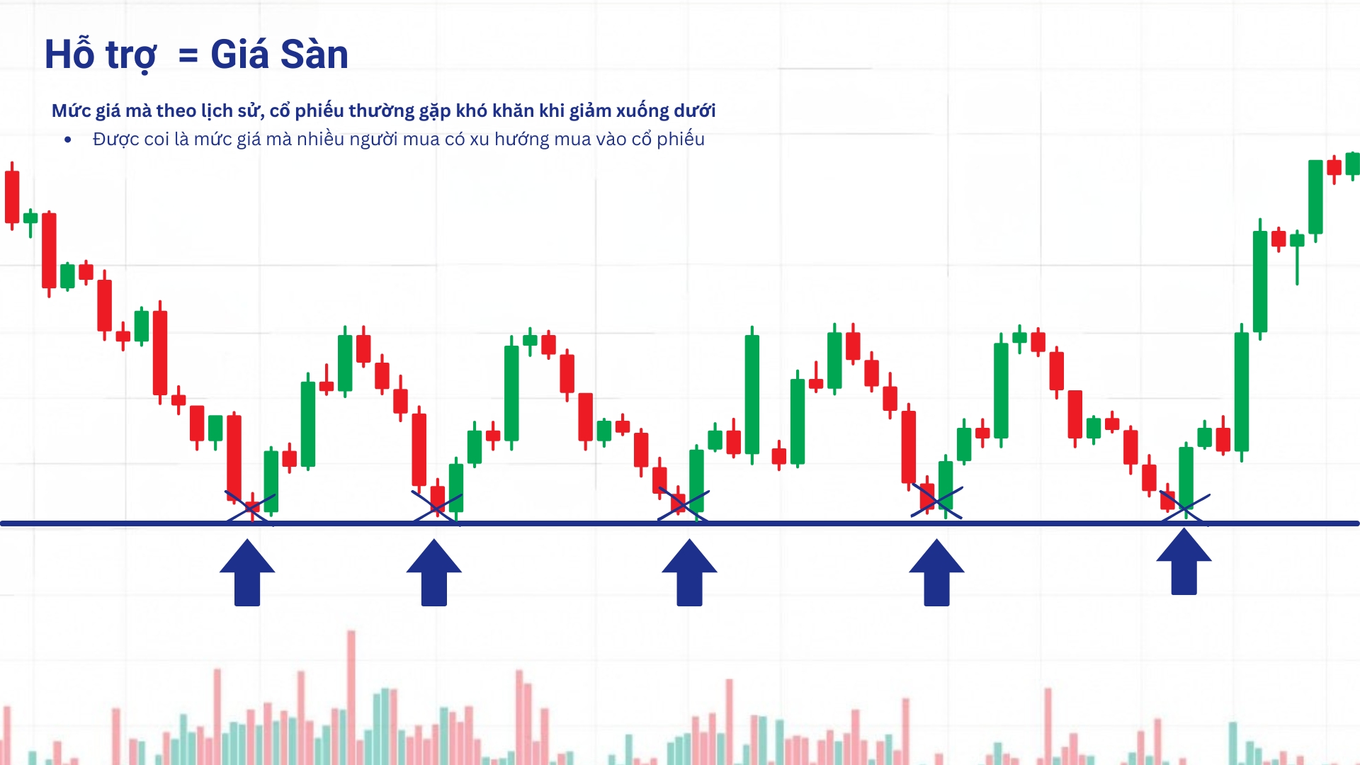 2.1. Support (Hỗ trợ) giống như một cái "sàn" giữ giá cổ phiếu không rơi thêm: