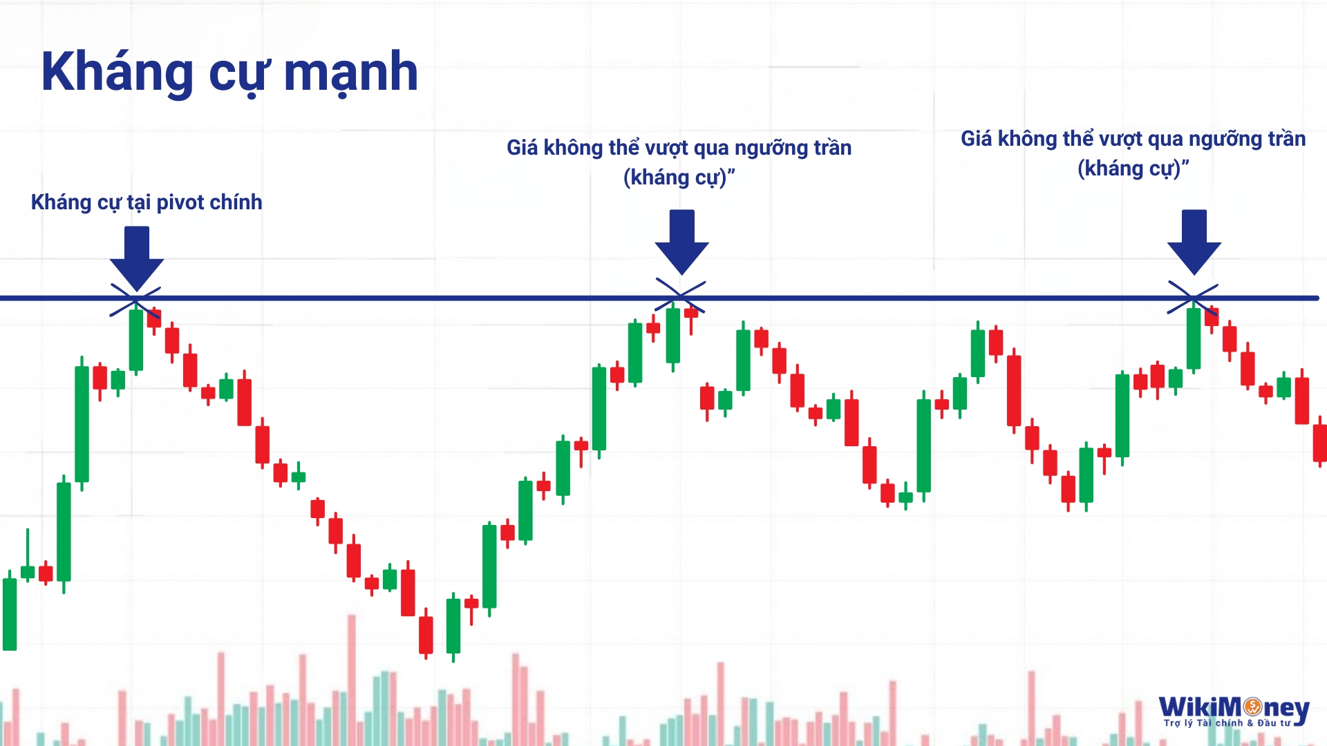 - Cổ phiếu tăng giá lên đến một mức nào đó lại bị đẩy xuống, rồi lại tăng lên tới mức cũ lại bị đẩy xuống, rồi lại tăng lên tới mức cũ lại bị đẩy xuống. Khi điều này lặp đi lặp lại, đó chính là vùng kháng cự rõ ràng.
