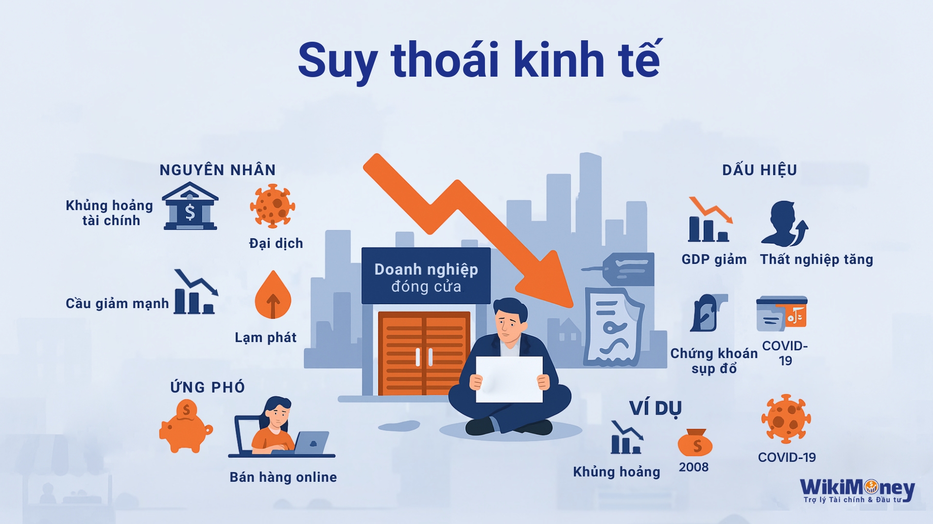 Suy thoái kinh tế là một khái niệm thường được nhắc đến trong các bản tin kinh tế, nhưng không phải ai cũng hiểu rõ nó là gì và nó ảnh hưởng đến cuộc sống hàng ngày như thế nào. Suy thoái kinh tế không chỉ là vấn đề của các chính phủ hay doanh nghiệp lớn, mà nó còn tác động trực tiếp đến từng cá nhân, gia đình, từ việc tìm việc làm, chi tiêu, đến tiết kiệm và đầu tư. Bài viết này sẽ giải thích chi tiết về khái niệm suy thoái kinh tế, nguyên nhân gây ra, ảnh hưởng thực tế đến cuộc sống, với ví dụ từ các cuộc khủng hoảng kinh tế lớn như năm 2008 và đại dịch COVID-19, cách chuẩn bị và ứng phó để bảo vệ bản thân và gia đình trong những giai đoạn khó khăn.