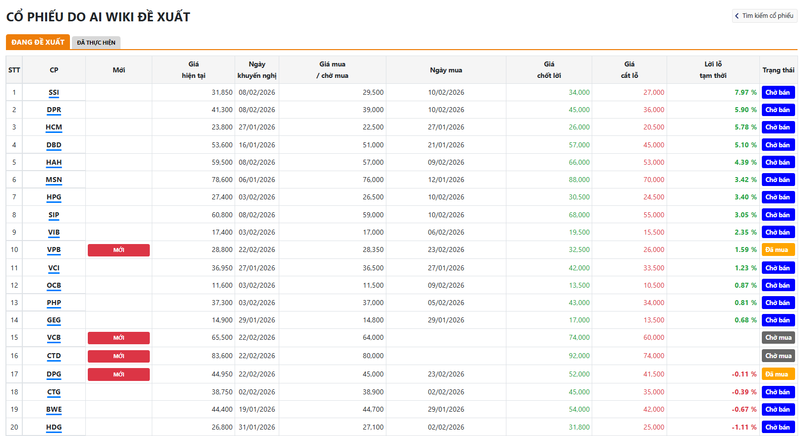 Danh sách cổ phiếu đang được đề xuất: