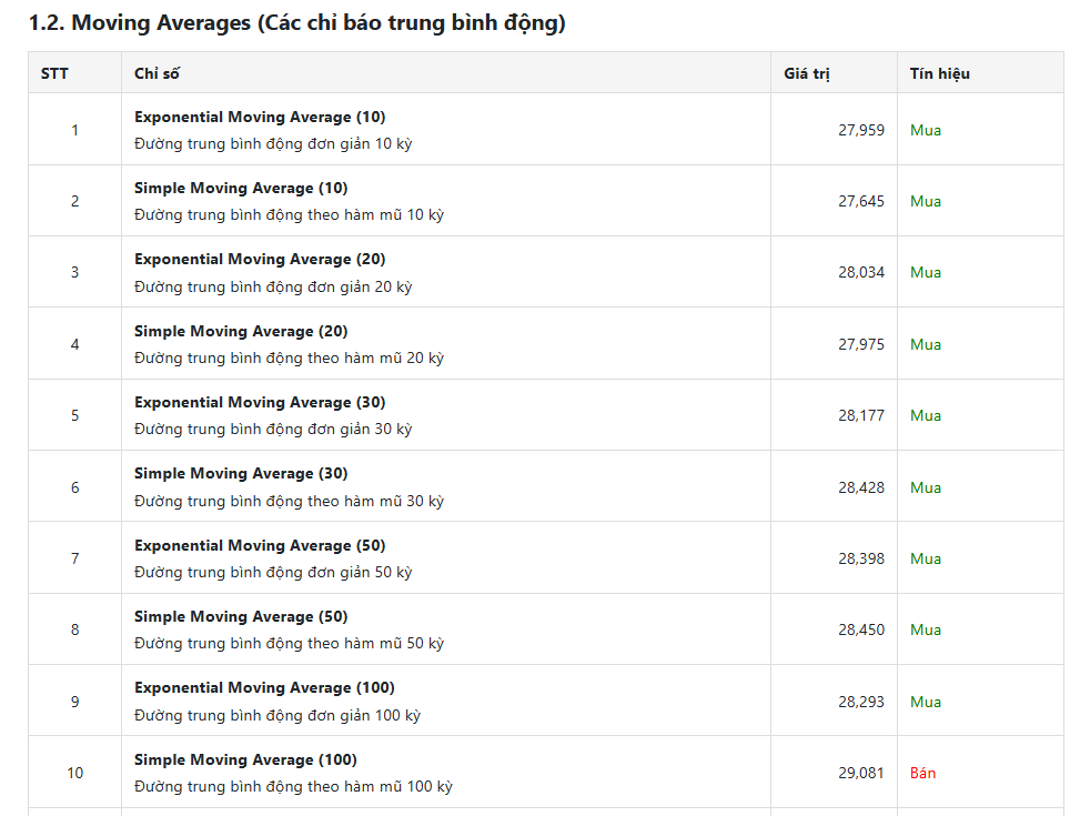 Nhóm chỉ báo trung bình động (Moving Averages)