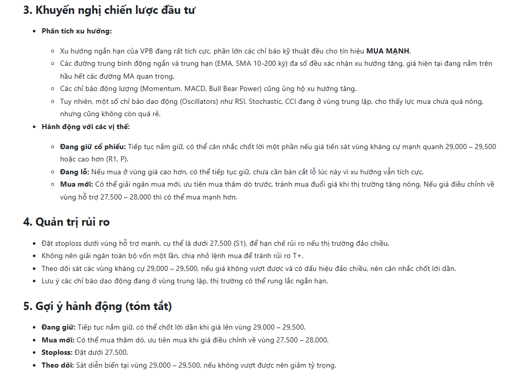 Dưới đây là khuyến nghị chiến lược đầu tư, quản lý rủi ro và gợi ý hành động do AI WikiMoney tư vấn từ kết quả phân tích kỹ thuật ngắn hạn của VPB chiều ngày 23/2/2026.