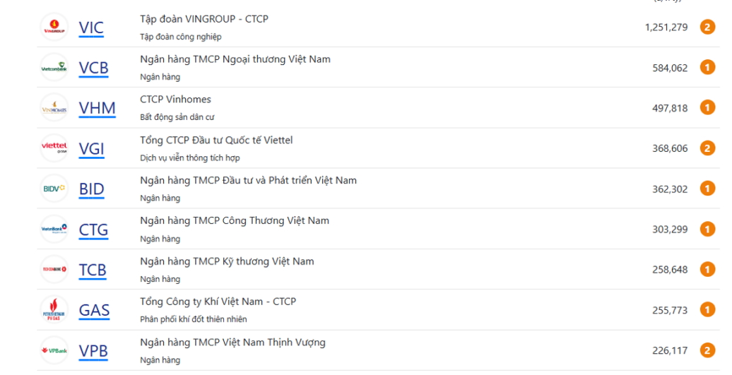 - Vốn hóa cao hơn