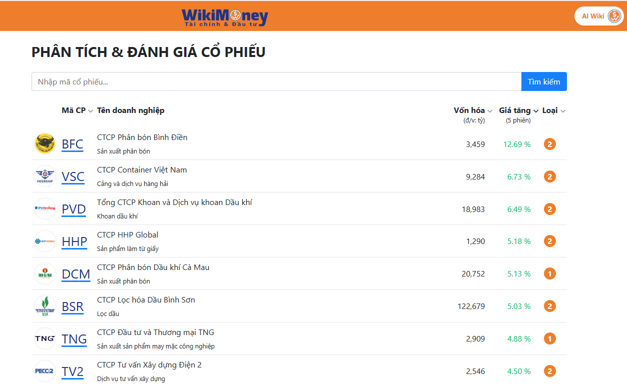 ► Tất cả cổ phiếu trên AI WikiMoney đều được xếp loại và gợi ý chiến lược đầu tư phù hợp.